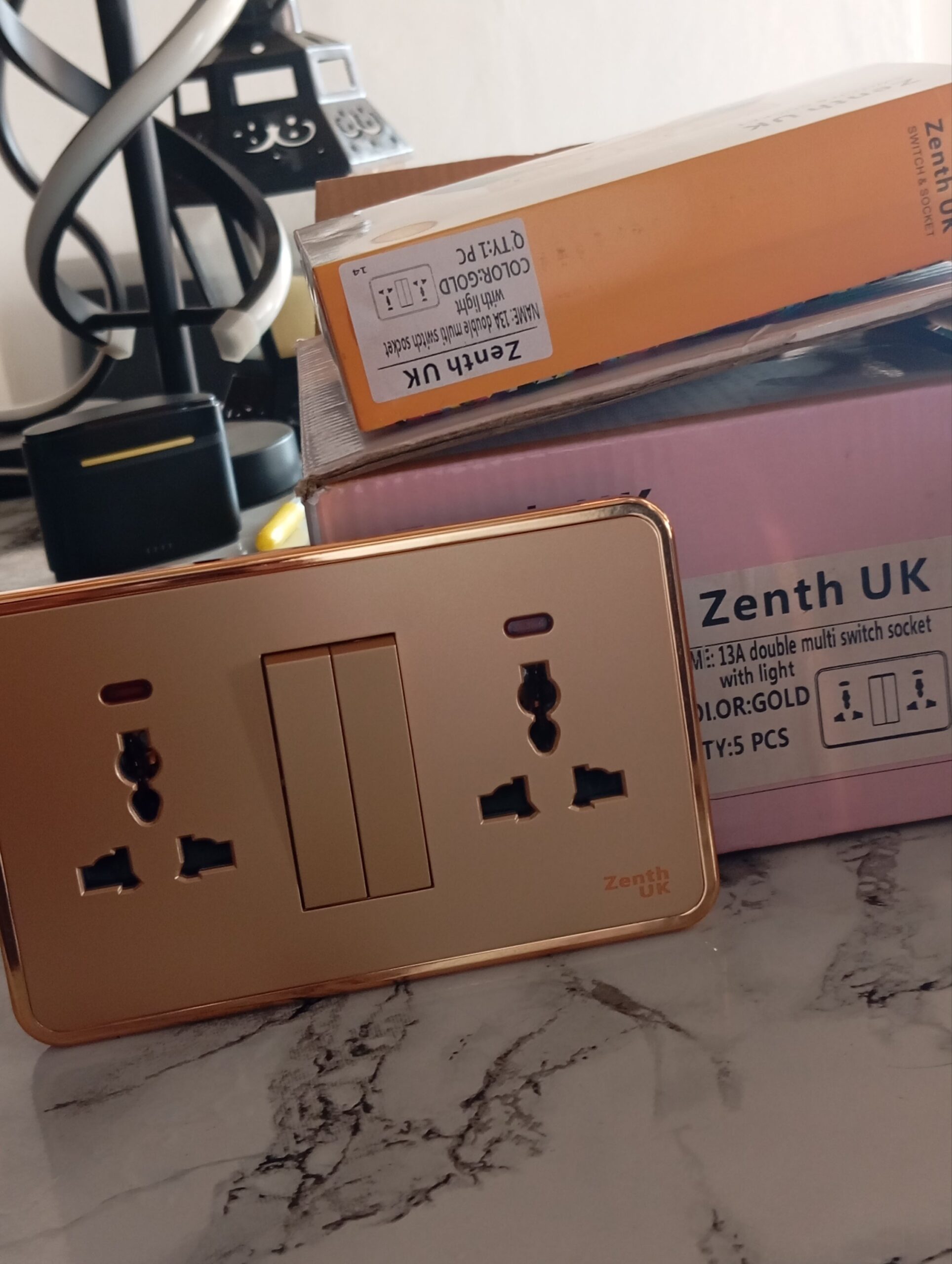 Zenth UK 13A double multi switch socket with light Gold quantity